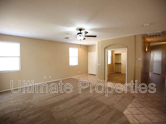 4 Bedrooms + 2 Full Bathrooms, Kitchen Island With Snack Bar, Built-In Microwave, Smooth Top Range/Oven, Dishwasher, Disposal, Dining In Kitchen/Great Room, Ceiling Fans, Diagonally Installed Tile And Carpet Flooring, Split Master Suite With Walk-In Closet, Covered Patio, Grass And Desert Landscaping, 2 Car Garage