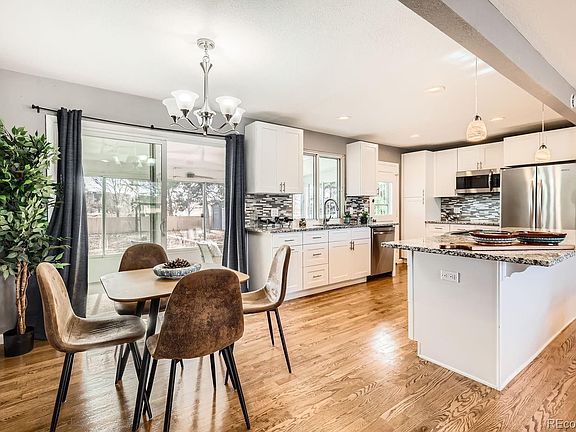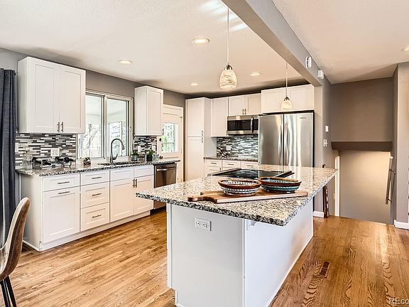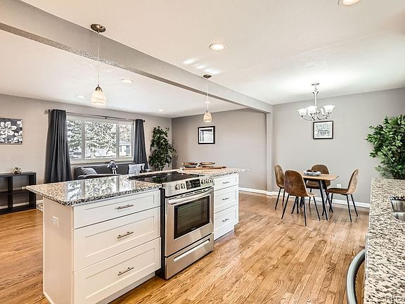 Welcome to your FULLY UPDATED/TURN KEY READY 4bed/2bath tri-level, brick, mid century modern home with direct access to Green space, Sand Creek Park/Trail from your back yard! Minutes walking to the CU Anschutz Medical Campus! Experience beautiful mountain and city views from your South facing backyard, while sipping on your morning coffee or evening beverage. TONS OF NATURAL SUNLIGHT! The home is conveniently located just minutes to I-70, Park and Ride Light Rail (A Line), I-225, Stanley Market and Central Park Shopping and Restaurants. The open kitchen/dining room/living room floor plan boasts an extra large, counter height kitchen island with cooktop in center perfect for entertaining or eat-in meals. Kitchen includes new soft close cabinetry, granite counter tops, recessed lighting, original hardwood floors, and new stainless steel appliances. Walk out into your heated sunroom and use for entertaining or for your morning coffee. There is direct access to the garage from the house as well! Both bathrooms are updated with trendy tile with two bedrooms on the upper level and two bedrooms on the lower level. Washer and Dryer Included! LOW ELECTRICAL BILLS WITH SOLAR HEATING - SOLAR PANELS WILL BE CONVEYED FREE AND CLEAR TO BUYER AT CLOSING!!! NEW SEWER LINE, NEWER FURNACE/AC, NEW ELECTRIC PANEL, CRAWLSPACE WITH NEW MOISTURE BARRIER, AND NEW ROOF! For special financing options, please contact listing agent.