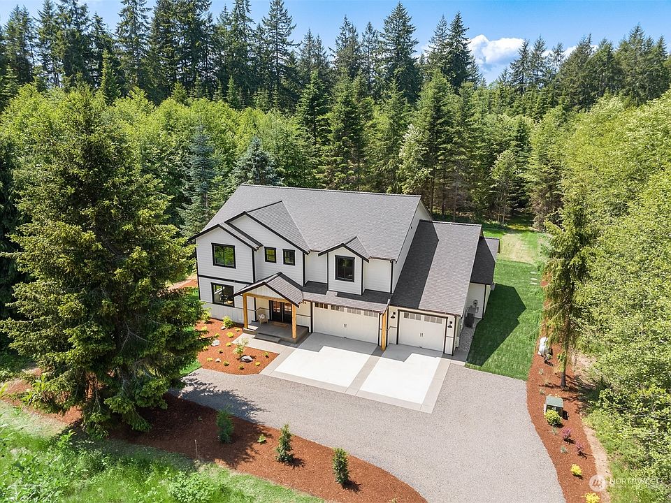 Tucked at the end of a private lane, this beautifully designed & newly constructed home sits on a quiet and peaceful 2 acres. As you walk through the double-door entry you are immediately drawn to the expansive dining and living rooms, which connect to the gourmet kitchen with high-end appliances, black granite counters, and an over-sized island, all highlighted by raw cedar beams. Additionally, the main floor offers a spacious office/den, covered patio off the living room, and guest suite with ¾ bath, wet bar, & separate covered patio. Upstairs features an additional 3 bedrooms, full bath, utility room, bonus room with wet bar, and the primary bedroom with vaulted ceilings, walk-in closet (with built-ins), and a spa-like 5-piece bathroom.