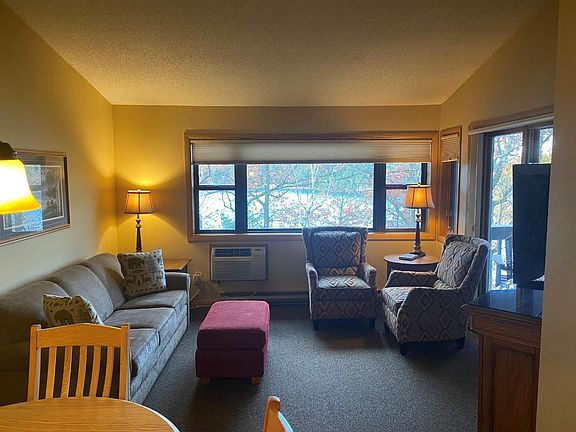An investment with benefits! This unit is a one bedroom queen size bed, one bath premier condo suite with a whirlpool tub at the Pointe Hotel and Suites on Minocqua Lake. One of the few units with vaulted ceilings the unit has an owners closet to house your personal items while being rented to guests. Unit comes fully furnished. It is in the rental program and has excellent rental history. The common areas include indoor pool, hot tub, sauna, fitness area, boat slips, gas grill picnic patios, conference rooms, bicycles, kayaks, canoes, lakeside fire ring, children's playground, snowmobile trails, fishing pier and laundry. Stay when you like and earn income when you are not here!