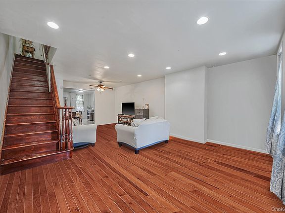The main floor welcomes you with an open layout, hardwood floors, and a seamless flow from the living and dining area into a large eat-in kitchen. A tasteful rear extension adds a full bathroom and leads to the private backyard—perfect for gatherings or quiet evenings.
