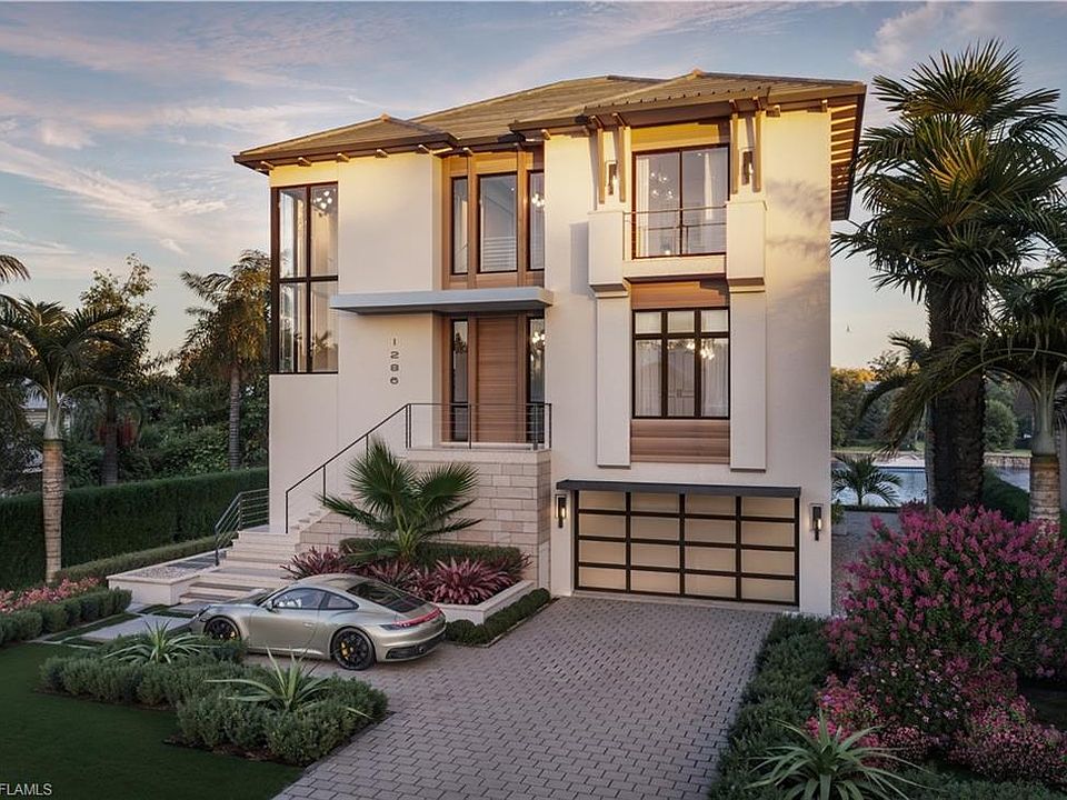 EXPECTED COMPLETION JANUARY 2026! Picture yourself in a breathtaking, brand-new 4-bedroom, 4.5-bath waterfront masterpiece in the tranquil Gulf Harbor enclave of North Naples, just west of U.S. 41. This soon-to-be-completed residence features its first living area elevated to 16 feet, providing unmatched peace of mind against storm surges. Nestled in a serene community of approximately 150 single-family homes, many with private docks and swift 10- to 15-minute boat access to Wiggins Pass, Gulf Harbor is a rare haven for those who live for the water. Close to everything but private for waterfront living. Step inside to a stunning blend of light and space, where soaring ceilings, expansive walls of glass, and an open-concept layout forge a seamless connection to the serene outdoors. The heart of this 3,871 sqft home boasts premium finishes and a chef’s kitchen crafted for culinary excellence, while the tranquil primary suite serves as your private retreat. Outside, enjoy a spacious outdoor dining area and an expansive pool deck, perfect for entertaining or relaxing by the water. A 10,000 lb boat lift ensures effortless Gulf adventures, making every day a waterfront escape. Perfect for a boat up to 26/28 feet. With an additional 2,365 sqft of outdoor and garage space, this 6,236 total square foot residence is built with uncompromising quality, delivering lasting comfort, security, and ease of living. Seize the opportunity to own this luxurious waterfront sanctuary in Gulf Harbor!