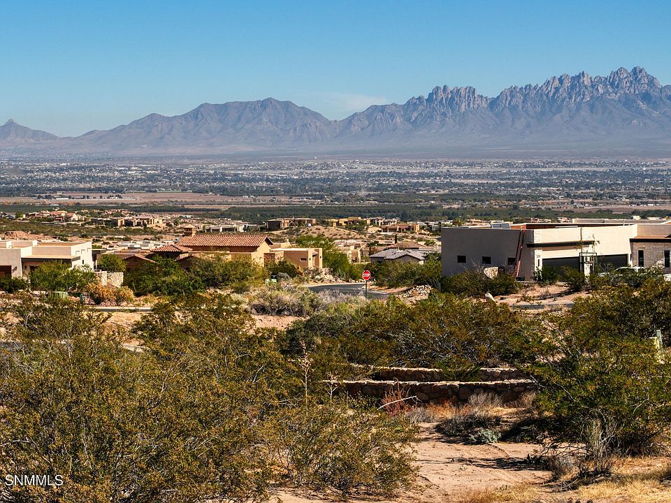Enjoy panoramic view of Mesilla Valley, Las Cruces, Picacho Peak and The Organ Mountains. This unique homesite sites high above the neighboring community with unobstructed views below. 2400 sq ft minimum required in this community. All utilities stubbed out in the road.