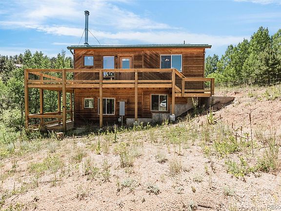 If you are looking for peace and comfort in a gorgeous, remodeled mountain home, then look no further. This modern mountain home has custom finishes and thoughtful upgrades throughout. The views that welcome you to the home, are matched by the beauty of the inside. The sun-drenched natural light throughout the home accentuates the open concept living area with a vaulted ceiling, patio doors that open to the wrap around deck providing 360-degree views year-round and a wood burning fireplace that is perfect for cozy nights in the Colorado mountains. The kitchen has granite countertops, stainless steel appliances, knotty pine cabinets and can host meals in the eat in nook, or at the bar. On the main level, you will find two bedrooms and a full Jack and Jill bathroom, with a double vanity. Inside the secondary bedroom you will love the hide-away loft, perfect for at home adventures or an additional play space. Moving to the basement, you have a large great room, an additional bedroom and upgraded bathroom. With just over an acre of land, outdoor living is at its finest here. The recently stained wrap-around deck on the main level and large deck from the walkout basement allow you to enjoy your land from all levels of this home. Whether you are outside walking the property or sitting on one of the decks, you can enjoy the sounds of Elk Creek running through the backyard. A recently installed PUR water whole-house UV light filter, and a reverse osmosis system ensuring your comfort and health are a top priority. Security and convenience are seamlessly integrated with exterior cameras and a smart lock system, always ensuring peace of mind. Minutes from hiking and 4x4 trailheads, you will have easy access to Highway 285, making trips to Denver a breeze. Outdoor living on just over one acre of land, wildlife, and serenity combined with modern finishes, this home is waiting for you!