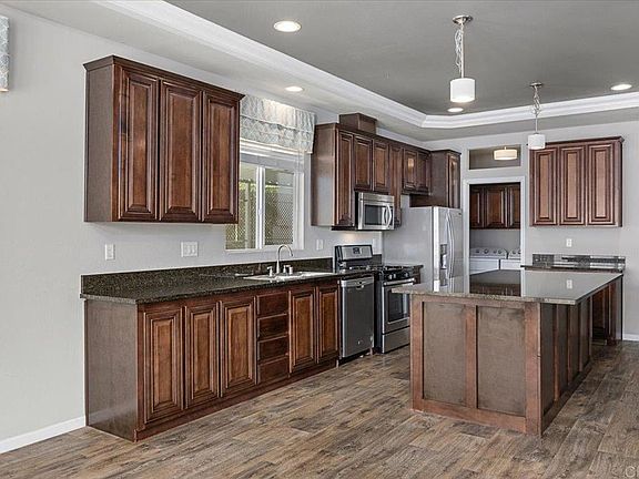 This 2015 Creekside Manor offers an open floor plan with vaulted ceilings, crown molding stainless steel appliances 3 bedrooms 2 bath ,welcoming front porch. Move in ready central A/C and plenty of natural light. Valle Verde is a non profit run park with low space rent . Shown by appointment Please call Cathy Bucalo 760-420-1101.