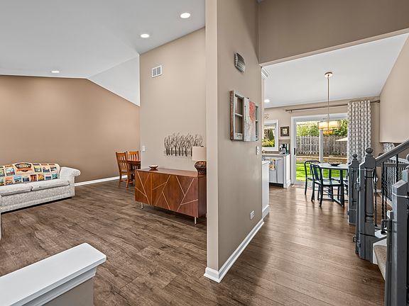 This special Pulte four bedroom model was originally built using the 4th bedroom as a sitting room, providing a spacious primary bedroom suite and bath. The sitting room can easily be converted to a 4th bedroom as it has its own closet, window, ceiling fan, and dedicated HVAC supply/return. Owners have maintained and updated this home with meticulous pride. Living and Dining rooms have new vinyl plank flooring & vaulted ceilings. The kitchen is highlighted by 42" white cabinets w/soft close drawers, pantry w/slide out shelves, crown moldings, recessed and undercounter lighting, vinyl plank floors, and stainless steel appliances. Eating area overlooks the family room below on the lower level which has a fireplace w/gas insert & remote control, vinyl plank flooring, powder room, plus a private nook for office or hobby space. The second floor is highlighted by the Primary bedroom suite with walk in closet and private bath that includes a 5ft. shower. Additionally, there are the 2nd and 3rd bedrooms, plus a full bath with tub and shower. Finally the finished sub-basement has a recreation room with vinyl plank floors, recessed lighting, drywall & suspended ceiling. Adjacent is the utility room which provides extra storage plus space for hobbies or a workshop. Exterior is equally well maintained with new roof, 5" gutters & oversize downspouts. Finally the backyard has a patio, is fully fenced, and is landscaped for privacy. The neighborhood is perfect for everyone. Just a short distance to the park with basketball and tennis courts, cricket field, playgrounds, outdoor pavilion, fishing dock at lake and walking path with exercise stops. Excellent school Districts 96 and 125 make this home the perfect choice.
