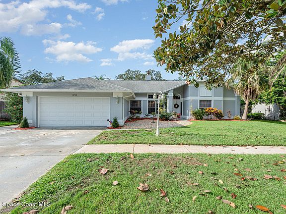 Welcome to Oaktrails at Meadowridge! This pool home offers 3 bedrooms, 2 full baths, plus a versatile den—perfect for office, exercise, or nursery. The open layout includes a double-sided wood-burning fireplace between family and living rooms, plus a dining/living combo. Kitchen overlooks the family room with sliders to a spacious (19x52) covered lanai. The primary suite opens to lanai, pool, and hot tub, with double sinks, walk-in shower, and walk-in closet. Enjoy the hot tub and listen to the waterfall flowing into the freeform (33x12) pool. Split floor plan for privacy. Fenced yard with lush landscaping. Conveniently located near Space Center, with quick access to Orlando via I-95 and minutes to the beach. New roof to be installed prior to closing, HVAC 2017, Water heater 2012. New carpet in living room and primary bedroom