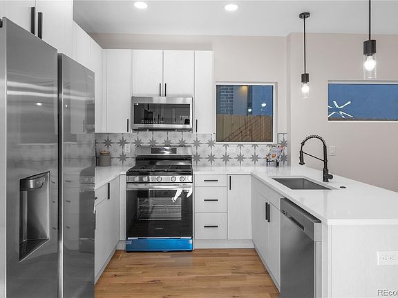 Back unit. Introducing 1286 Newton St, Denver CO - a hidden gem nestled in the up and coming West Colfax neighborhood. This stunning back unit of a duplex offers over 1100 square feet of modern and spacious living space. Step inside to discover two exquisite on-suite bedrooms, each with its own private bathroom, ensuring utmost comfort and privacy for residents. Additionally, a convenient half bathroom is available for guests. Prepare to be awed by the magnificent full rooftop deck, boasting breathtaking mountain views. Whether you want to soak up the sun or enjoy a serene evening under the stars, this rooftop oasis is the perfect retreat. Located in the heart of Denver, this home is within walking distance to the light rail, making commuting a breeze. The interior is adorned with hardwood flooring throughout, exemplifying elegance and durability. The quarts Callacatta countertops add a touch of luxury to the modern kitchen, while the solid core doors and custom metal handrails reflect impeccable craftsmanship. In addition, this property includes a detached 1-car garage, providing secure parking and extra storage space. Don't miss the opportunity to make this remarkable residence your own and experience the best of Denver living.
