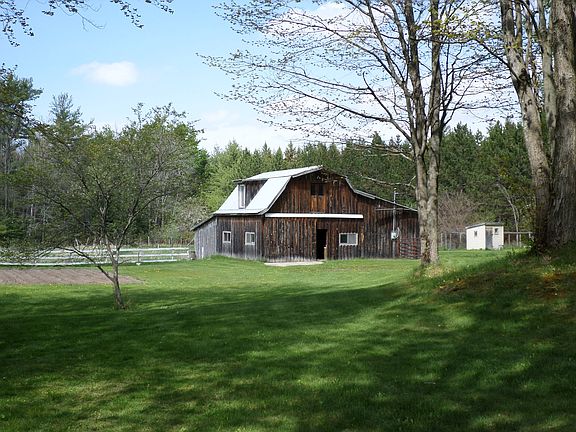 This is a 2080 sq ft Bi-level home with 24'x24'attached garage and paved driveway set in a very beautiful, private & quiet setting. It has been recently remodeled and has a brand new boiler with base board heat, and a fireplace making the heating bill very low. It has charter cable TV & Hi-speed internet. There is also a very nice 2 story barn with its own electrical service providing plenty of power, newer root cellar and a wood shed. The property runs 10 acres deep and is approximately 1/3 clear with the rest wooded. A pond and deer blind near the back of the property. There is a large garden area, orchard area with fruit trees, nut trees, grape vines & rhubarb patch. A fenced in chicken coop.