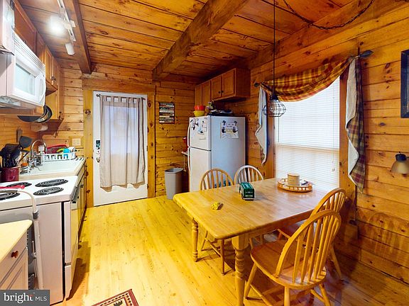 Welcome to your peaceful sanctuary nestled among the trees! Step inside to a warm and inviting open-concept living area with vaulted ceilings, exposed log beams, and a fireplace perfect for cozy nights.This rustic yet 2 bedroom 1.5 bathroom log cabin offers the perfect blend of seclusion and comfort. Tucked away on 1.34 acres surrounded by nature
