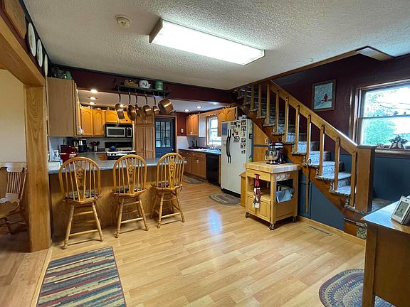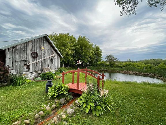 This one is a show stopper! With 39.35 acres, two barns, a grainery, a garden area, fruit trees AND a pond, this home just about has it all! The farmhouse features a large kitchen, dining, and living room, a main floor master, a craft room, one full bath and one half bath. The upstairs has two bedrooms and a small sitting area. Outside you'll find 3 pastures, a massive detached garage/workshop, a pond, and a barn that was formerly home to goats!
