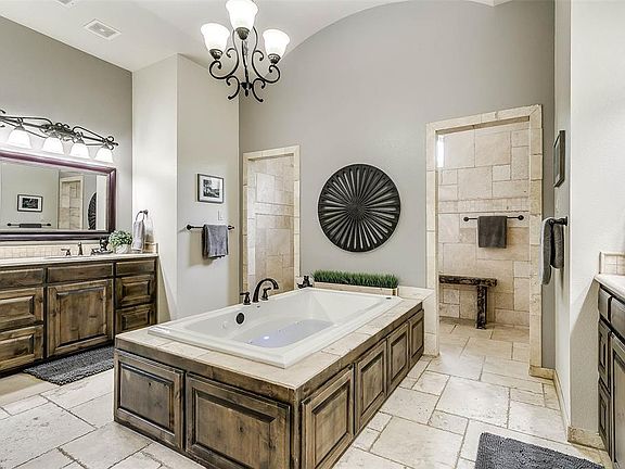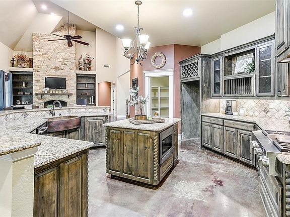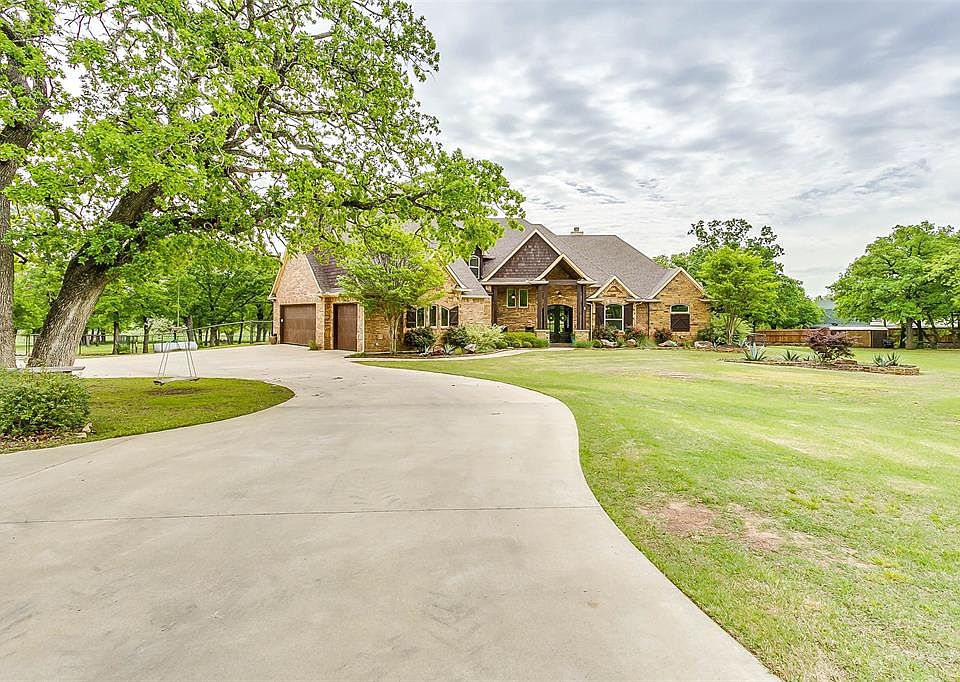 Over 3 acres of beautifully landscaped lawns with a custom built 4-3 executive home! Large entry into large family room with soaring ceilings. Open concept kitchen with double ovens, gas cooktop, copper sink, island with built in microwave and gigantic pantry. Luxurious master suite has a large walk through shower and jetted spa tub with color changing settings. Downstairs you also have a game room, office and bedroom. Upstairs boasts a media room, game room and 2 bedrooms. Utility room has double washer and dryer hookups. Covered patio has brick columns, arches and stone fireplace perfect for your view of 3 acres with gorgeous landscape and mature trees.