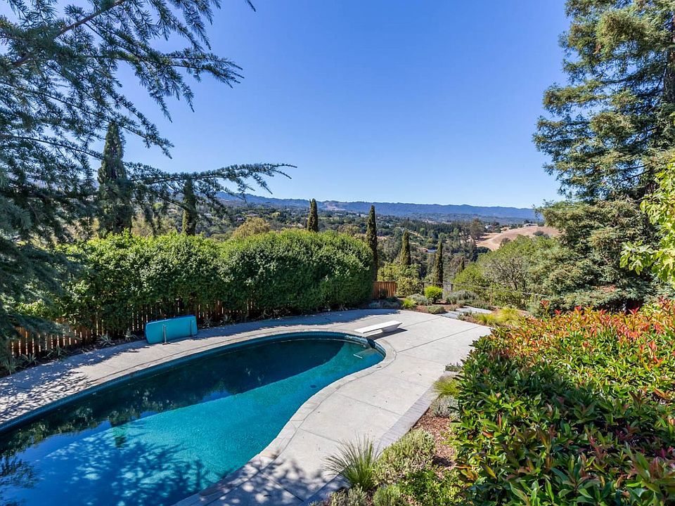 AMAZING VIEWS! Prime location with Palo Alto schools and perched privately on a hilltop. Bright home, floor-to-ceiling view windows, open layout with hardwood flooring, updated kitchen with new appliances and updated bathrooms, separate living room and formal dining room as well as breakfast area with kitchen and separate family room. Beautifully landscaped property. Has expansive decks and a pool with one of a kind mountain backdrop. The 3rd bath has direct access from the pool. Each room has wide windows with picturesque views. Walking paths surround the home and lead through prolific gardens and mature fruit and shade trees, and connect to the back deck as well as steps that lead down to a resort-style pool and spa. 4 total bedrooms. Ideal guest bedroom/executive office sits privately off of the main living rooms. A true garden retreat that provides incredible privacy, with a fantastic location just a few minutes to downtown Los Altos and Easy access to 280. 3 car garage.