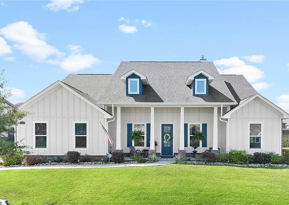 Shiplap-accented gas fireplaceStandout curb appealPrivate backyard saltwater poolOversized front porchFormal dining roomPrimary suiteLarge soaking tub