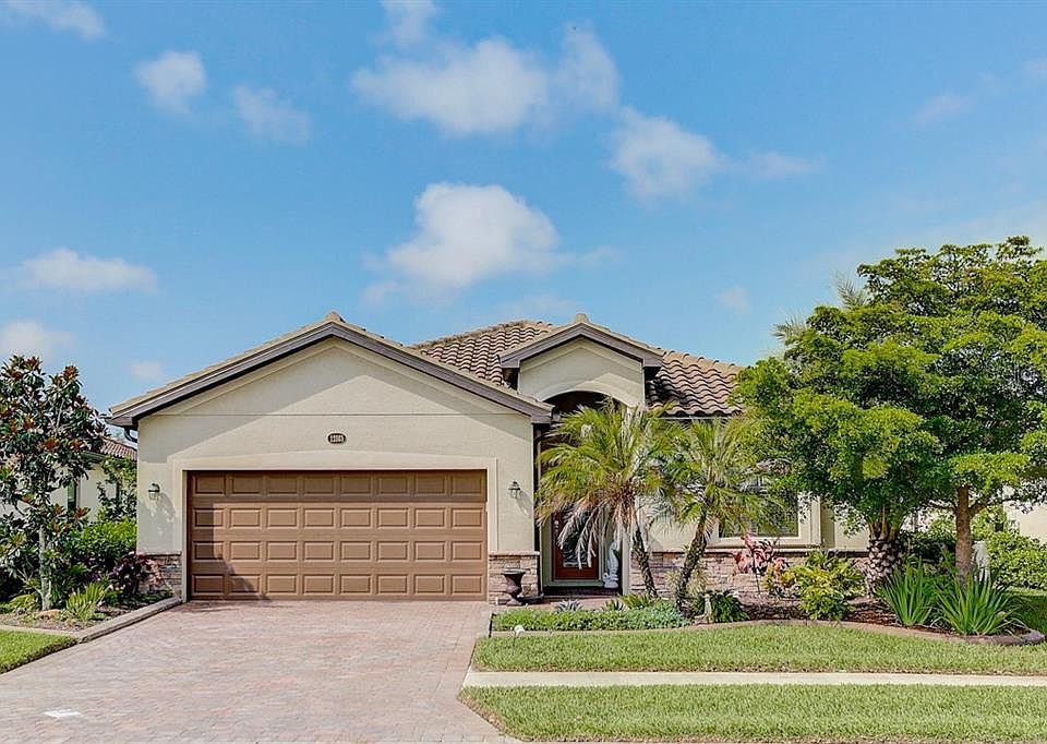 Your vacation does not have to end! This gorgeous turnkey furnished 3 BR, 2 BA, 2-car garage home in the gated resort-style community of Gran Paradiso is move-in ready and appointed with high-quality furnishings, including flat screen Samsung/Vizio TVs, King-size bed in Master Bedroom, dishes, cookware, cutlery & more. Just bring your toothbrush! The floor plan offers privacy with split bedrooms and the third bedroom is ideal for an office or den. The home offers architectural details, like crown molding and tile on the diagonal. Enjoy the spacious eat-in kitchen with stainless-steel appliances, granite counter tops and a breakfast bar that opens to the Dining area. From your Great Room, step onto the extended lanai (also fully furnished!) and enjoy the tranquil view of the greenbelt and lush tropical landscaping. Your Master Bedroom suite features a spacious walk-in closet and your en-suite Master bath has a Garden Tub and separate walk-in shower. There are numerous upgrades inside and out: newer Maytag washer, custom window treatments, whole house accordion hurricane shutters, roll-down shades on lanai, decorative concrete curbing and privacy landscaping. The maintenance-free Tuscan-style community of Gran Paradiso offers a resort-style pool with beach entry, a magnificent Clubhouse with gathering room, library, game & pool rooms, state-of-the-art Fitness Center, tennis & pickle ball courts, sauna and steam rooms & a myriad of activities, organized by a full-time Lifestyle Director. The magnificent beaches of the Gulf of Mexico are only a short drive away and you will be in close proximity to shopping, restaurants and the new Atlanta Braves Spring Training Stadium. Schedule your showing of this beautiful home today!