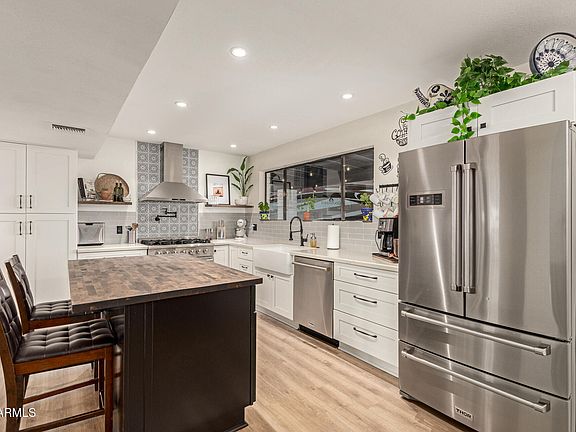 RARE Find! This beautifully updated 4-bedroom, 2-bathroom home is nestled on a prime corner lot and offers the perfect blend of charm, function, and modern style—with no HOA and owned, Pearl-certified solar for energy efficiency. A home this size with 2 AC units and pool should pay $800/month energy costs, but with this owned solar, you only pay $800/YEAR!!! Inside, you'll find warm wood-look flooring, plush carpet in the bedrooms, abundant natural light, and a soft, neutral palette throughout. A two-way fireplace connects the formal dining and eat in kitchen, creating a cozy yet elegant entertaining space. The gorgeous kitchen is both stunning and functional, featuring quartz countertops, stainless steel appliances, gas stove, white shaker cabinets with pull-out drawers, a subway tile backsplash, and a butcher block island with bar seating. The spacious family room boasts vaulted ceilings and sliders leading straight to your backyard oasis. You'll surely love the primary bedroom that has French doors opening to a private patio and right next to your own private garden. A walk-in closet so large you can have your own private office inside! Gorgeous ensuite bath with dual sinks. The large laundry room is equally impressive, offering beautiful cabinetry with pull out drawers and plenty of room to stay organized. You'll also find tons of additional storage throughout, including an extra separate storage room in the garage. Designed for ultimate relaxation and entertainment, the backyard is a true showstopper, featuring an extended covered patio, lush lawn, and a sparkling diving pool perfect for year-round enjoyment. With a 2-car side-entry garage, extended driveway, RV gate and parking, and easy-care desert landscaping. This home has it all!! Up to date style, comfort, and practicality. Conveniently located near top-rated schools, shopping, dining, entertainment, freeways, and just minutes from Westgate and State Farm Stadium.