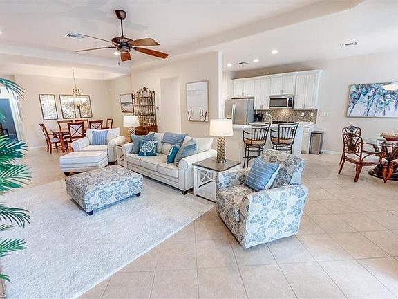 Discover the perfect combination of comfort, style, and convenience in this beautifully maintained 3-bedroom, 2-bath coach home, nestled within the gated community of Aviano at Naples. This spacious second-floor residence offers 1,975 square feet of light-filled living space, complete with an attached 1-car garage and a large screened balcony featuring southern exposure and tranquil views of the lake, clubhouse, and pool. Inside, an open-concept layout creates a warm and inviting atmosphere, ideal for both relaxing and entertaining. The modern kitchen showcases quartz countertops, stainless steel appliances, and ample cabinetry, making it as functional as it is stylish. The split-bedroom floor plan provides extra comfort and privacy for family and guests. Residents of Aviano enjoy resort-style amenities, including a sparkling community pool and spa, clubhouse, and fitness center. Perfectly located just minutes from shopping, dining, top-rated schools, and Naples’ world-famous beaches, this home offers the ideal balance of convenience and the relaxed Florida lifestyle you’ve been searching for.