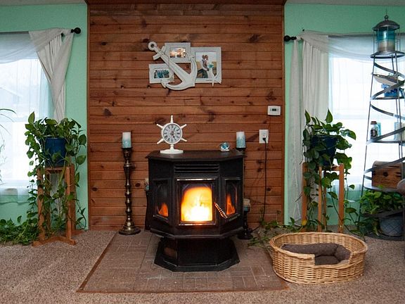 3 bedroom home on 4.86 acres. Move in ready with 2 newly remodeled bathrooms. Home comes with a huge, fully insulated 32 x 40 pole barn with 2x6 walls. Pellet stove heater will save you money$