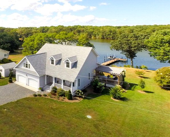 Glebe Creek--Lottsburg area--custom-built 3 bedroom open floor plan contemporary with a large bonus room on a beautifully landscaped waterfront parcel with app. 122 feet of waterfrontage and excellent water views. Deep water pier with 8000 pound boatlift with depths suitable for sailboats or trawlers. The house features 3 bedrooms(all with water views), 2 1/2 baths, hardwood floors, great room with cathedral ceiling, and a dining room on the waterside. The water side kitchen has stainless steel appliances, island, granite counter tops, and a large pantry. The master bedroom is on the first floor with water views and double walk-in closets. The master bath has a sit-down shower, tile floor, and a jet tub. The upstairs features 2 guest bedrooms, a full bath, office area, and a huge bonus room which could be used as guest quarters or an entertainment/exercise room. There is also a utility closet with washer and dryer, attached 2-car garage, open front porch with Trex decking, a cedar pergola and screened porch on the waterside facing the pier, German tankless hot water system, dual zone heat pump system, whole-house steam humidifier, maintenance-free vinyl siding, detached storage building, and a private deep well, Also included is a 6500 watt portable generator with direct hook-up to the electric panel. It is a very short run to the Potomac River with some of the area's best fishing and crabbing.