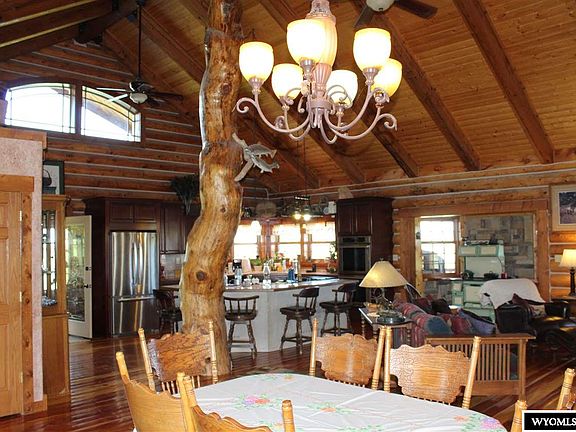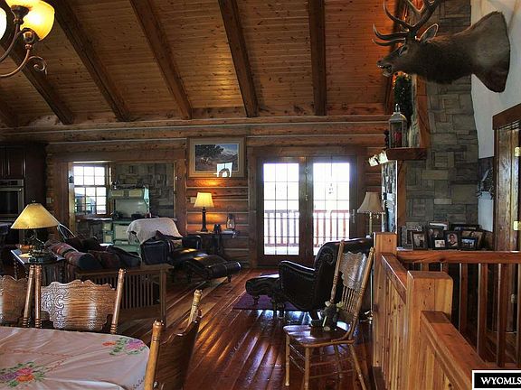 Welcoming custom log home with all the luxuries and country charm. Home boasts amazing views from every window. You walk right into a large open living space with large kitchen, living room, and dinning room. There is also a pantry and a sitting room. The master bedroom and bath is on the main level. The basement has several rooms that can be incorporated into anyone's needs including bedrooms, office, or work space. The exterior has a wrap around deck, pond, and wildlife.