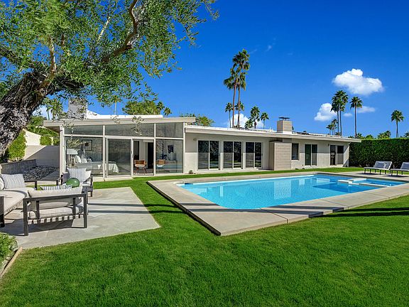 Yes, you really can have it all at this exceptionally remodeled Mid-Century Modern home in Palm Springs' exclusive Vista La Palmas neighborhood. Showcasing the revered talents of Palm Springs-based Alexander Construction Company and architect Charles Du Bois, the home was built in 1963 and has been featured in Architectural Digest. Its setting on a hill provides one of the best views in town, with front-row panoramas of the San Jacinto Mountains and Tachevah Canyon. While its exterior proudly displays original Alexander elements, including a brise-soleil facade and private entry atrium with sitting area, the interior blends classic MCM traits with today's most desirable appointments. An open one-level design powered by an owned solar system extends approx. 2,127 s.f. and boasts vaulted open-beam ceilings and Fleetwood windows and doors. A trio of bedrooms and a den/optional 4th bedroom include a 3rd bedroom that acts as an attached casita, and a master suite with spa-caliber bath. The main living area encompasses a living room with fireplace, a dining room, and a kitchen with double-waterfall island. About one-quarter acre, grounds feature a stunning backyard with pool and spa.