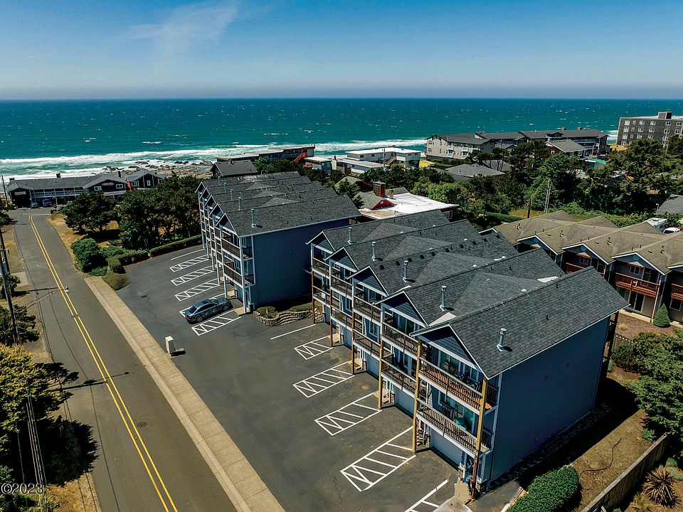 Location! Less than a block from easy beach access and to shopping and restaurants. Views of both ocean and mountains...this beach Townhome has so many great features: Attached 2-car tandem garage w/new smart garage door opener...a personal elevator and extra storage. Two primary bedroom suites w/full baths, plus a half bath. Four decks w/new aluminum screen doors. Newly painted walls, new LVP flooring, gas fireplace w/new burner assembly, new high-traffic carpeting on stairway, stainless appliances and a laundry area. The roof was replaced in 2021. The home comes with all the furnishings! CCRs approved for some pets & vacation rentals. Buyers check w/City to obtain VR permit. Out of the tsunami zone (according to flood maps).