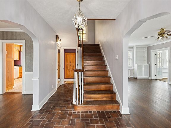 Welcome to 1287 Washington Rd, a timeless Dutch Colonial stone home in Mount Lebanon. This stately 5 bed, 5 renovated bath home features meticulous craftsmanship and an abundance of space. From vestibule entry, the home offers hardwood floors with a grand living room showcasing a stone gas fireplace. Adjacent to the living room are an office and a den, versatile spaces for work or relaxation. The renovated kitchen features soapstone countertops, newer appliances, a sunroom filled with natural light, a water-filtered herb garden and a fireplace. The 2nd floor captivates with beautiful stained glass leading to 3 bedrooms, including the primary suite with an en-suite bath and cedar closet. The 3rd floor has two additional bedrooms with a full bath. Lower level has game room, laundry room, half bath and an abundance of workspace. Aggregate patio with stone fireplace open to fenced in backyard. Governor's drive, widened driveway and 2 car tandem garage. New windows throughout 2022.