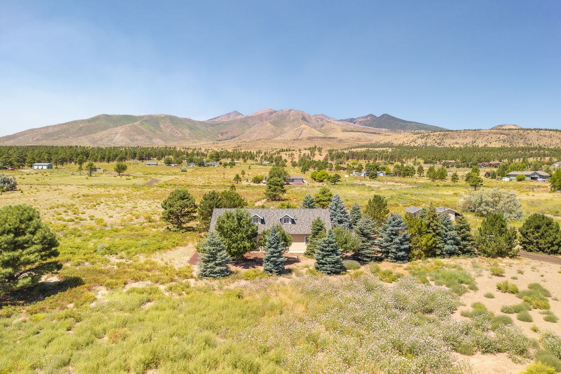 Breathe in the mountain air and take in breathtaking views of the San Francisco Peaks from the comfort of your own backyard. Tucked away at the end of a quiet country lane, this 2.69-acre property offers the peace and privacy of rural living just minutes from town. A beautiful spruce and pine ...