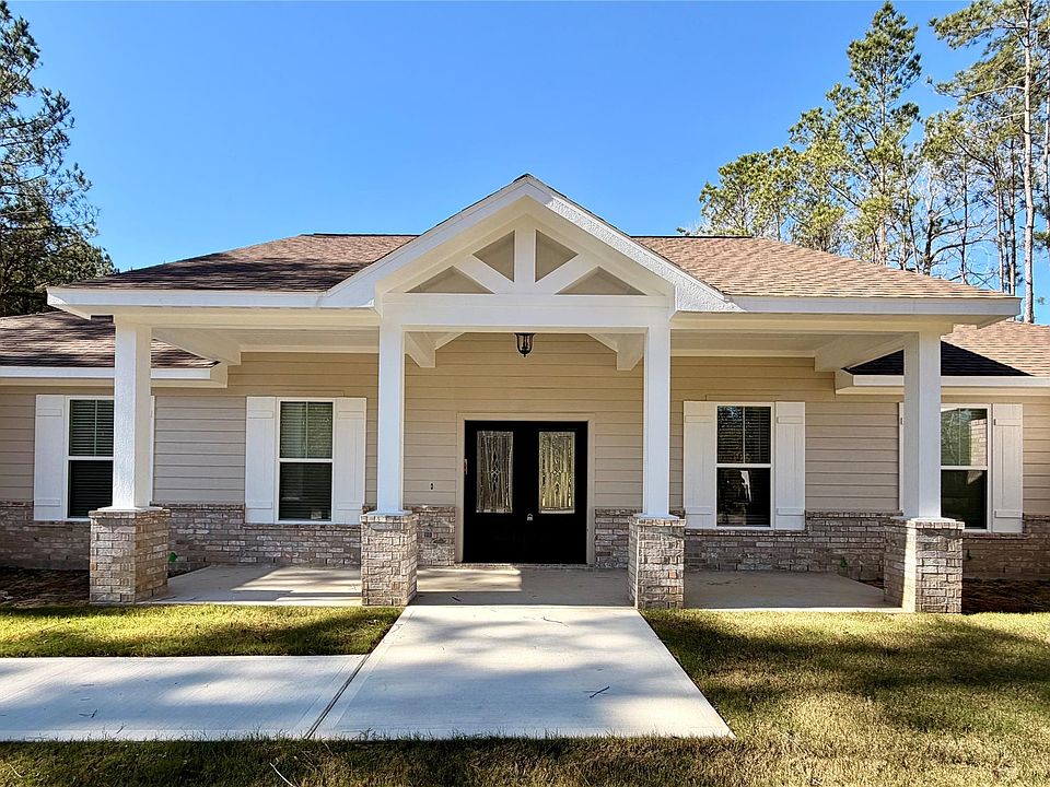 Welcome to this stunning new construction home nestled in the highly desirable acreage community of Republic Grand Ranch. Situated on a one-acre, wooded corner lot, this property offers exceptional nature view with mature trees still surrounding the home and an extra-long driveway that enhances both curb appeal and functionality. Inside, you'll find custom cabinetry and a thoughtfully designed open-concept layout. The kitchen seamlessly overlooks the living area and features a large granite island, breakfast bar, separate dining nook, and an oversized walk-in pantry perfect for everyday living and entertaining alike. The living area is filled with natural light, creating a warm and inviting atmosphere throughout. Enjoy outdoor living year-round with both covered front and back patios, ideal for relaxing, entertaining, or simply taking in the peaceful, wooded surroundings.