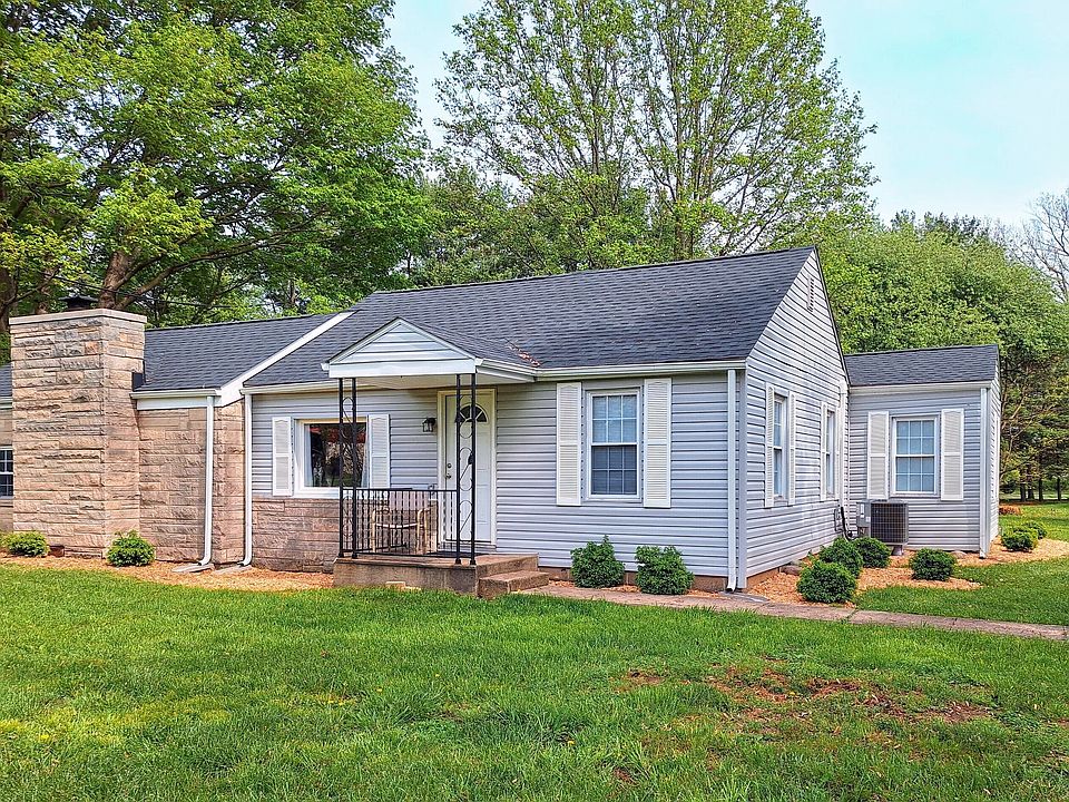 Come see this beautifully maintained home in Yorktown. The home sits on one acre with a spacious pole barn and mature trees. This cozy home also features a wood burning fireplace in the family room with tall beamed ceilings. The kitchen has granite counter tops and an island. The kitchen was completely remodeled in 2023 and includes the dishwasher, microwave and oven range. The home also has a new roof, vinyl plank flooring, water heater, heat pump, water softener and furnace installed. It is located minutes from downtown Yorktown.