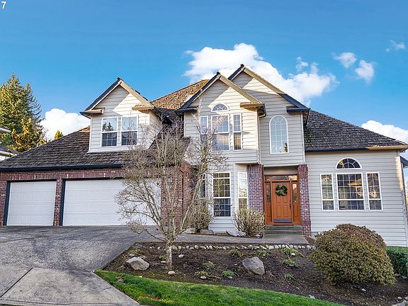 Bull Mountain Views! Wonderful home on .26 acres with SPORTS COURT! Fantastic for entertaining year round in the large kitchen/family great room that leads 2 large decks. Inside this home has high ceilings, 3 fireplaces, formal dining room, den/office, 5 bedrooms including cozy master suite with jetted tub. Separate living quarters w/ fireplace & deck. Cul-de-sac, backs to green-space w/trails & dog park nearby. Backroads to NIKE/INTEL