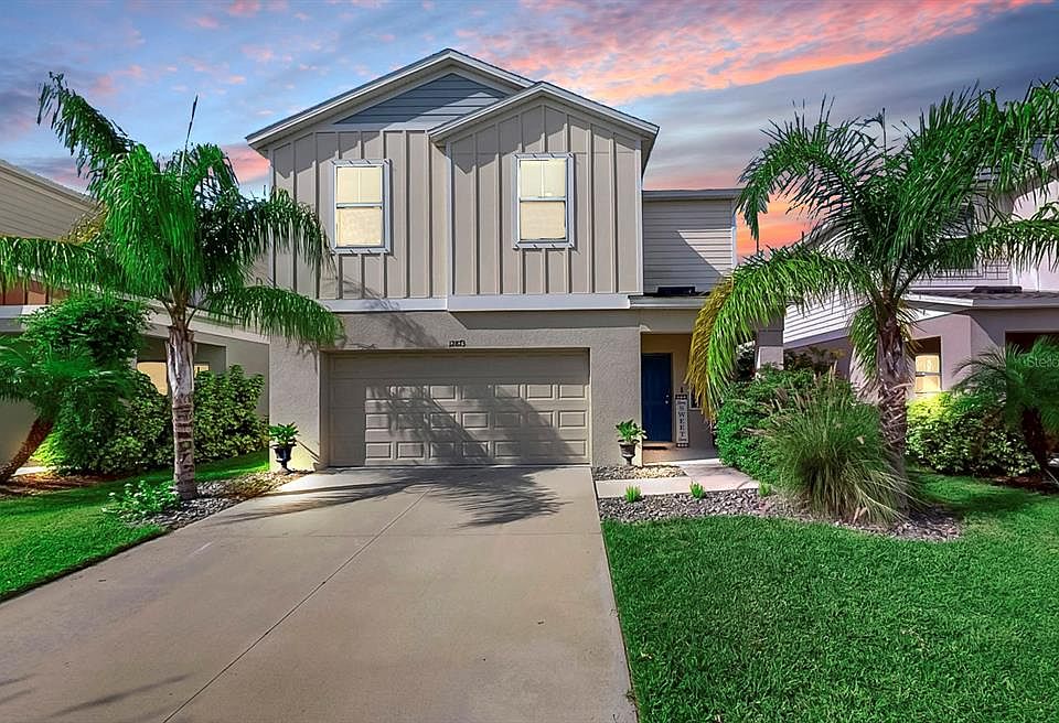 Welcome to this modern gem built in 2021 thoughtfully designed to balance style, comfort, and function. With 4 bedrooms, 2.5 baths, and a 2 car garage, this home offers living in a bright and spacious contemporary package. The layout feels open and inviting without sacrificing privacy and ideal for anyone who craves comfort, space, and style. As you step inside, you’re greeted by elegant finishes of laminate plank flooring throughout the first floor, setting the tone for the home’s warm and inviting feel. The open floor plan centers around a large great room, seamlessly connecting to a beautifully appointed kitchen featuring granite countertops and a walk-in pantry, A half bath with pedestal sink on the main level offers added convenience for guests. The 2nd Level , you’ll find a thoughtfully designed layout that includes a spacious loft—perfect for a home office, playroom, or media area—as well as all four bedrooms and an expansive laundry room. The primary suite is a true retreat, offering breathtaking sunset views, a huge walk-in closet, and a primary bathroom with dual sinks and walk in shower. All wet areas on the upper level are finished with luxury vinyl plank flooring, while the bedrooms feature cozy carpet for added comfort. Step outside and discover the generously fenced-in backyard, complete with a retractable awning covering the concrete landing and a playset —a private space for outdoor play, entertaining, or just relaxing. Recent upgrades include a brand-new water heater (2025) and new refrigerator (2024). Community Amenities include clubhouse, basketball, pool, fitness center , playground, dog park, walking trails and tennis courts. Home location is convenient for shopping, dining, schools, and major commuter routes. This property is a must-see- Don’t miss your opportunity to make this spectacular home yours—schedule a private showing today!