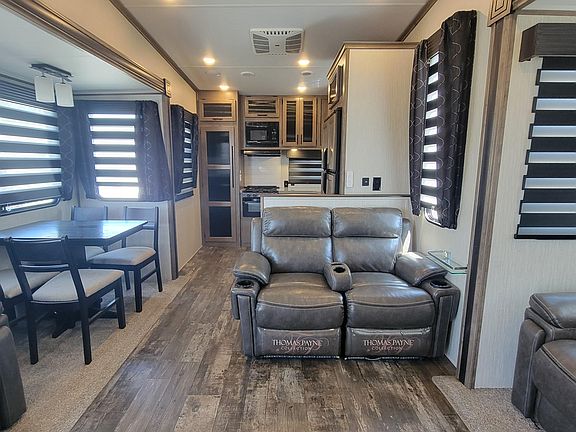 55 years and over Mobile Home Park in Yucaipa. Close to uptown Yucaipa with a great view of the mountains. Amenities include heated swimming pool, ckubhouse and laundry facilities on site. This is a Fifth Wheel RV with 3 pull out slides. Fully furnished. Master bedroom has a dresser, separate air conditioner, full bathroom/shower, double sinks, closet with plenty of storage. 1/2 bathroom below Master bedroom. Livingroom area has another separate air conditioning unit. Fully furnished with 2 recliners and two couches. electric fireplace for extra heating and ambiance lighting. Dining table with 4 chairs in eating area. Kitchen has plenty of storage, built-in refrigerator with double doors with freezer. Penty of kitchen counter space with ranch sink, 3 burner stove. This unit runs off of propane with two propane tanks. This unit has no pets allowed. Property amenities includes a pool, clubhouse and laundry facilities.