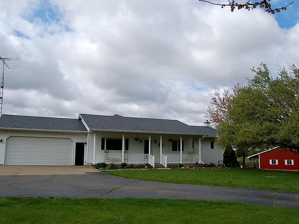 Beautiful landscape & a cozy front porch greet you as you pull up the driveway to this move-in ready 4BR, 3BA with over 4000 sq ft of living on 4.23 acres w/ a 40x60 out building w/gas, electric & water. Amenities include a great room w/vaulted family w/knotty pine walls and ceiling, stacked stone fireplace, hickory floors, large kitchen w/pantry & bar seating for 7. Front living room currently used as an office, master with spacious tile shower and double sinks, main level laundry/mud room w/built-in bench, 15x23 composite deck, full finished basement w/kitchenette, dining, play area, 4th bedroom, bath & rec room, patio & brick paved fire pit. 2 car garage. Hard wired generator hookup. Whether you're looking for a place for a small hobby farm, space to entertain or a multi family home, this home is ideal. Seller will remove farm fencing upon buyer preference. Small out buildings, W & D, water softener, portable kitchen island, basement freezer, heater in barn & propane tank excluded