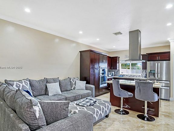 The chef's kitchen is a highlight, complete with a large island, sleek stainless-steel appliances, and upgraded finishes. Bathrooms have been tastefully renovated, adding modern comfort and style to every corner.