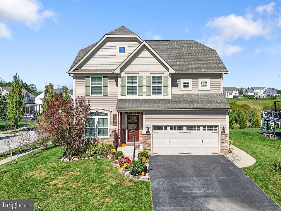 Perched high above surrounding neighbors, we present 1288 Alta Vista Way. You'll find an absolutely stunning interior with nothing to do but move in and enjoy all of the upgrades you deserve. Main floor features all solid hardwood floors and open floor plan with cathedral ceilings and lovely exposed beams. Continue to be impressed by the custom live edge island and full height granite stone gas log fireplace. Kitchen includes abundant quartz countertops with stylishly coordinated cabinets, backsplash, stainless appliances including gas range and custom pantry. Step out onto the large trek deck to enjoy sunrise and sunset views with 270° sky view. Lower level features walk out basement which is finished to a high standard with a wine bar, work out area, study area, with rough in bathroom and plenty of additional storage. Walk out to stamped concrete patio with lovely landscaping privacy and nice flat play area. All of the four bedrooms are extremely large with generous closets and ceiling fans. The second floor laundry room includes plenty of space for all your needs, including a utility sink. Primary bedroom has tray ceilings, large walk-in closet with built-in storage and a brand-new master bathroom with heated floors, dual sinks, large walk-in shower with dual showerheads, and lots of additional storage. Close connections to highway, with all the peace and quiet of the country. Community nature trail connects to York County trails and Hertiage Rail Trail is only a mile away! Ejoy fabulous community amenities like pool, clubhouse and fitness center!