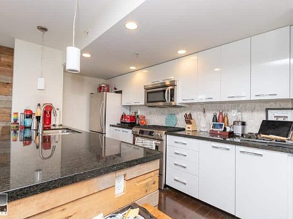 Bright modern livingOversized windowsHigh ceilingsContemporary kitchenGas fireplaceSpacious street-level patioNatural gas bbq hookup