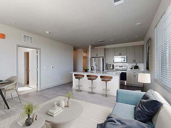 Embark on a journey to our brand-new, thoughtfully crafted studio, 1 and 2 bedroom apartments in the heart of Lakewood, Colorado. Railside at Wadsworth Station boasts designer kitchens equipped with stainless appliances, including a dishwasher and microwave. The sleek kitchen island creates the perfect space for culinary delights and entertaining guests. Enjoy the convenience of an in-unit washer/dryer, and in select units, your own private balcony from which to soak in the vibrant city energy.