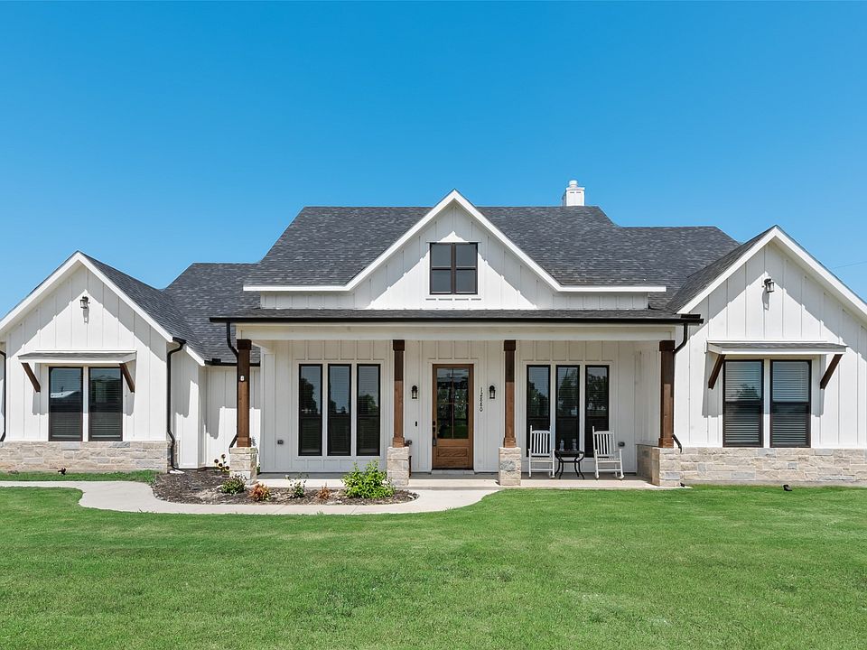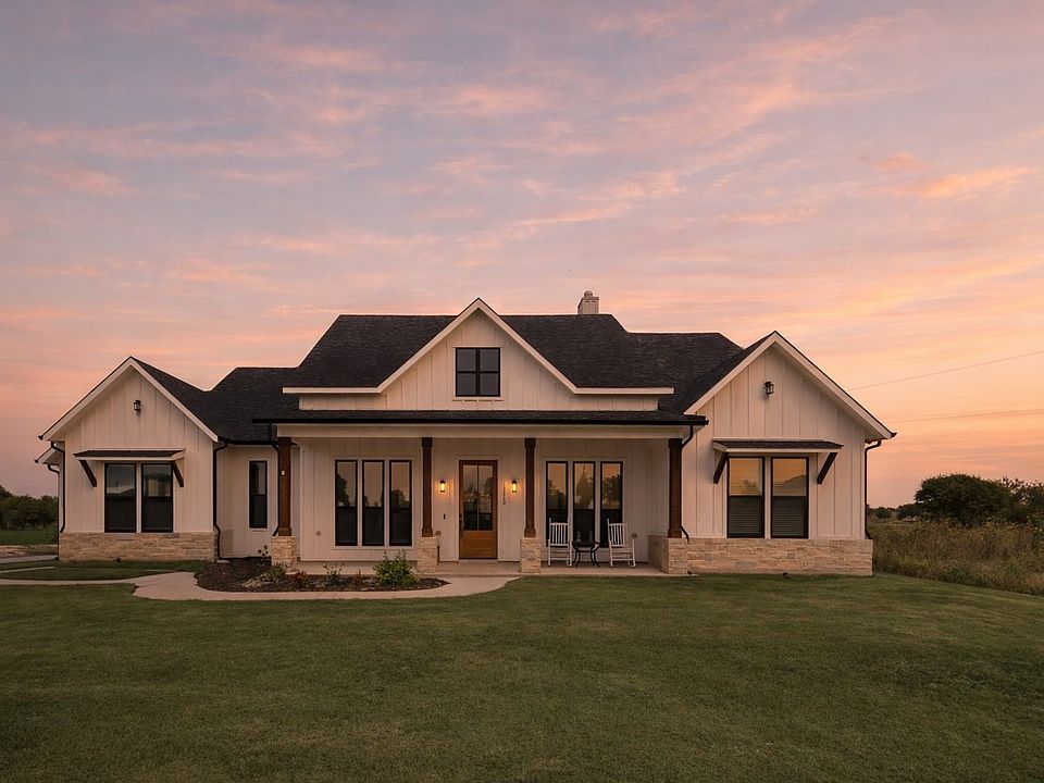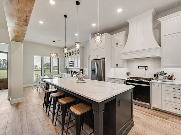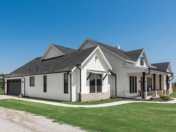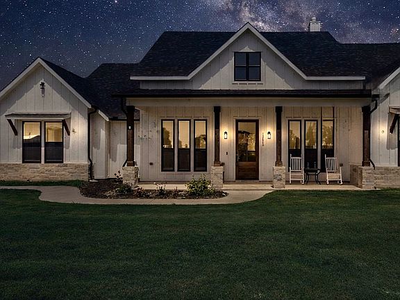 Custom Modern Farmhouse on Acreage w No HOA and no Restrictions. 2.67 acres to host your home business, farm, or agricultural adventures, you name it! Offering a perfect blend of upscale finishes and serene country living. Just over a year old, this beautifully designed residence showcases a thoughtfully crafted floor plan and top-tier finish-out throughout. At the heart of the home lies an incredible chef’s kitchen, featuring stunning quartz countertops, custom cabinetry, premium appliances, and a spacious island perfect for entertaining or family gatherings. Step into luxury with designer touches in every room, from the oversized garage with ample storage to the pet wash station conveniently located in the laundry room. Outdoors, you’ll enjoy the spacious covered patio and find plenty of parking for your RV, boat, or recreational vehicles, making it ideal for adventurers and hobbyists alike. An additional poured slab is ready for your workshop, utility vehicle garage, etc. The property includes a charming tree house perched along a seasonal creek, inviting exploration and play. Whether you're hosting a backyard Texas BBQ or relaxing under beautiful starlit skies, this home offers the ultimate retreat, fun, and exploration for everyone. With the opportunity of Ag Exemption, this acreage is not only beautiful but potentially beneficial for your taxes. Come and experience the unmatched blend of modern luxury and peaceful country setting—a rare opportunity you won't want to miss! The adjacent lot to the left is also available, if you wish for an additional 2.67 acres.