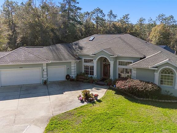 ELEGANCE AT ITS FINEST! This exquisite 4-bedroom, 4-bathroom estate with luxurious upgrades is a true masterpiece that blends the charm of town and country living. Designed with no detail overlooked, the home offers a spacious and welcoming layout ideal for every family member, including a private den with double French doors. Throughout the home, tray ceilings add depth and architectural interest, complemented by high-end light fixtures and ceiling fans that exude elegance. The formal living and dining areas offer a warm atmosphere, with large windows that fill every room with natural light. Wood floors and Roman-inspired arched doorways enhance the home’s architectural charm, while a thoughtful layout creates a harmonious flow from one space to the next. The home has been meticulously maintained and boasts an extensive list of recent upgrades, including a new roof (7/31/24), a saltwater oversized pool with a water fountain, and a portable home generator. Other notable features include two tankless water heaters (one for the master bedroom (2024) and one for the main house), a new well pump, water softener, and a water filtration system, ensuring year-round comfort and convenience. The property also includes two central air conditioners (main home unit new 2019), irrigation system, and security system. A fully fenced backyard (8-foot chain-link with 3 gates) offers privacy and security, while the front and poolside vine-covered fences provide additional seclusion. NEW FIBER OPTIC INTERNET JUST INSTALLED! At the heart of this home is the chef-inspired kitchen—a true culinary masterpiece. Featuring high-end cherry cabinetry, granite countertops, stainless steel appliances, a large center island with a prep sink, and ample bar seating, the kitchen is designed for both function and style. The built-in convection oven, warming oven, glass-top stove, dishwasher, and large pantry are complemented by recessed lighting, while a skylight fills the space with natural light. The breakfast nook, with its mitered glass window, offers a serene view of the covered lanai and sparkling pool—perfect for enjoying your morning coffee. The spacious family and living rooms provide access to the lanai and pool through large hurricane-impact sliding doors, offering stunning views of the backyard oasis. For those cooler nights, relax in front of the cozy wood-burning fireplace. The luxurious primary suite is a private retreat, complete with its own access to the covered lanai and pool. Two walk-in closets—one large walk-in, one large reach-in, for ample storage. The en-suite bathroom is also impressive, featuring large water closet with bidet, double shower with two showerheads, soaking jetted tub, and double vanity with a dressing table. Two additional bedrooms share a full bathroom off the hallway, while the fourth bedroom offers a private en-suite bathroom, wet bar, closet, and direct access to the pool and own private patio. This versatile space makes an ideal in-law suite or guest quarters. The home also offers a flex/bonus room, originally designed as a media room, now used for storage but easily adaptable to your needs. The laundry room is spacious and includes a sink, cabinets, and counters for folding clothes. The extra-large 3-car garage provides ample space for parking and storage. Conveniently located near the World Equestrian Center, shopping, and I-75, this home must be seen to be fully appreciated. Welcome HOME to Rolling Hills!