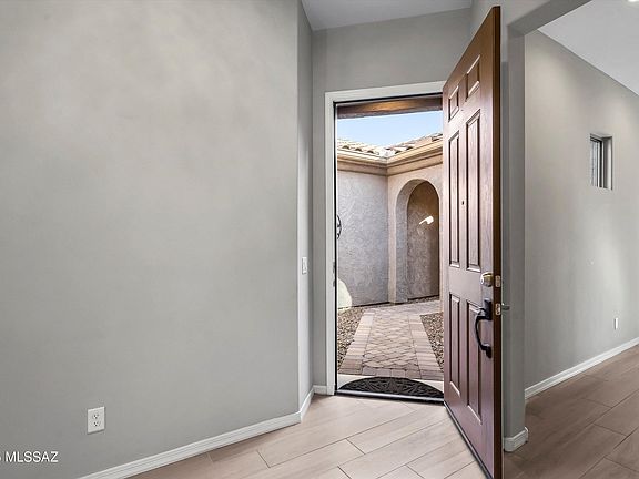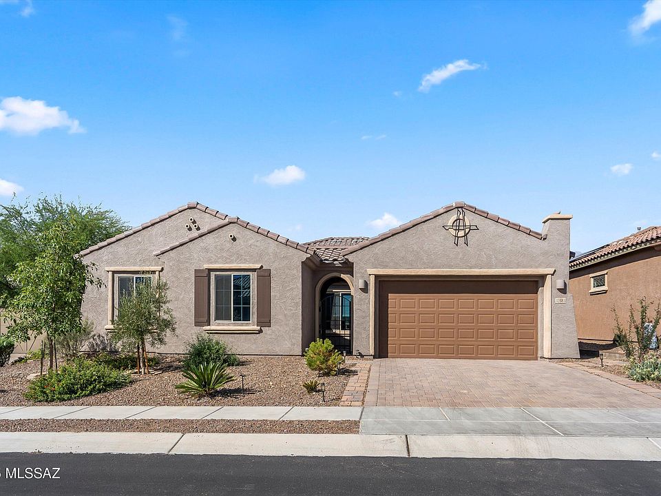 Welcome to this beautiful almost new 3BD/2.5BA home with an office/den offering 2,526 sq ft of thoughtfully designed living space. Nestled in the desirable heart of Oro Valley, this gem features an open concept floor plan that blends comfort and functionality. Step into the great room with a cozy fireplace perfect for gatherings or relaxing evenings at home. The expansive chef's kitchen is a true highlight, boasting abundant countertops, a large center island, ample cabinetry and plenty of room to entertain or create culinary masterpieces.The Owner's suite is your personal retreat, complete with a spa-like bathroom featuring dual vanities, generous walk-in shower and closet. Split floor plan ensures guest enjoy complete privacy, while the large office/den with elegant French Doors provides the ideal space for remote work or a quiet reading nook. Tech savvy buyers will appreciate gigabit fiber internet, wired ethernet throughout the home and surround sound wiring in the great room. This modern home also features a Culligan whole house water system. Step outside to a covered patio and oversized backyard, ready for your personal touch ideal for outdoor dining, a future pool, or lush landscaping. Conveniently located near top rated schools, shopping, dining and walking/biking trails.