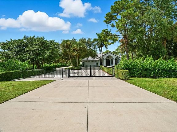 Experience refined estate living in the heart of Naples, located in the highly desirable Collier Woods neighborhood. Set on 2.59 ACRES (gated and fenced) - this former model home offers privacy, flexibility, and upgraded living just minutes from shopping, dining, and top schools. Featuring 3 bedrooms + Den, 2 bathrooms, PLUS an additional den or flex space with French doors—perfect for a home office, playroom, or creative space. With 2,166 square feet under air and a 1,200 sq. ft. steel-frame, air-conditioned bonus structure built in 2014, the property is ideally suited for multi-use living, whether it's a workshop, gym, or home-based business. Interior highlights include a bright, open layout with sliding doors, custom recessed lighting throughout, and a renovation in 2018 with a focus on the kitchen, laundry room and bathrooms. The kitchen features updated appliances, induction cooktop, modern cabinetry, and LED lighting beneath the bar and peninsula for an elevated yet functional finish. Outdoors, enjoy a heated saltwater pool and spa, paved circular driveway, basketball court, RV/boat parking with 30-amp outlet, irrigated garden beds, and a chicken coop. Additional improvements include a metal roof (2022), whole-home generator with 500-gallon LP tank (2024), reverse osmosis water system, new irrigation system (2023), ADT security with four Nest cameras, and a tiled, air-conditioned two-car garage. The bonus structure offers a private electric meter, dual breaker panels, built-in shelving, and paved access. No HOA, no flood history, and being sold unfurnished—this is a rare opportunity to own a flexible and beautifully upgraded estate property in one of Naples’ most central and sought-after locations.