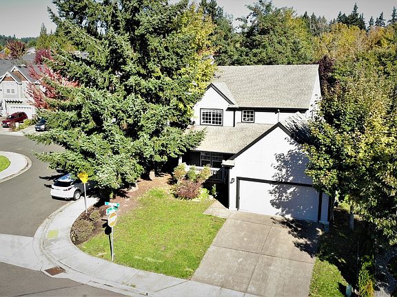 Super location and schools, traditional style 3 bed, two level home on large private corner lot backing to wooded green space. Oak hardwood floors across main level with formal living room, formal dining with wainscoting, island kitchen with white cabinets, and spacious family room (with two sided fireplace) all on main. Upper level has three bedrooms including vaulted master suite and two bathrooms. Spacious and private back yard.
