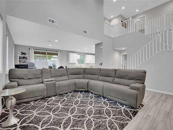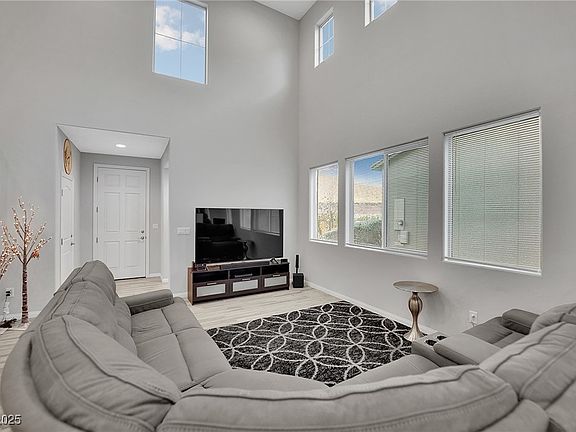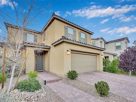 Welcome to The Cove, a private gated neighborhood with community swimming pool located inside of desirable Southern Highlands, set along the picturesque southern mountain range*Enjoy quick and easy access to the Strip, the airport, and California border*This nearly new home has been very lightly lived in and shows like a model*As you enter, soaring ceilings and abundant natural light fill the open and spacious family room*The gourmet island kitchen features granite slab countertops, stainless steel appliances, and a large walk-in pantry—perfect for entertaining*DOWNSTAIRS bedroom with a full bath and walk-in closet provides excellent flexibility for guests or multi-generational living*The primary suite offers a spa-like bathroom with an oversized walk-in shower and large walk-in closet*Step outside to a fully landscaped, low-maintenance backyard with artificial turf, fruit trees, and a covered patio accented with elegant paver stones—ideal for relaxing or entertaining.