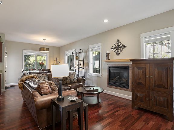 One owner & super location END unit condo that's been impeccably kept! Walk across street to New Seasons, Starbucks & more! New front patio/arbor recently installed for outdoor entertainment & enjoyment. Add'l features: kitchen w/ quartz countertops, S/S & gas appliances (fridge included), hardwood floors on main, stairs & upper hall, brand NEW carpets in bedrooms, vaults in master, dual decks, gas fireplace, NEST thermostat, 1 car garage & A/C!