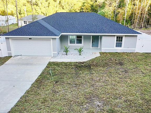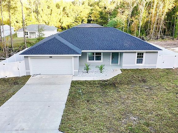 Discover this stunning brand-new construction 3-bedroom, 2-bathroom home designed with sleek, modern touches and exceptional curb appeal. From the moment you arrive, the two-car garage with a custom epoxy finish and the matching epoxy front Step inside to find luxury vinyl flooring throughout, an open-concept layout, and high-end finishes that set this home apart. The gourmet kitchen features quartz countertops with a waterfall island, soft-glow cabinetry, and modern lighting and fixtures a perfect combination of style and functionality. Each room offers a thoughtful layout, with spacious bedrooms and bathrooms boasting elegant details like contemporary showerheads and beautifully tiled bathrooms. The master suite is a true retreat, complete with a luxurious walk-in shower featuring tile all the way through. Outside, this home continues to impress with a quarter-acre lot, vinyl fencing for privacy, and built-in exterior lighting tucked under the roofline on every corner, providing a beautiful glow and added security. The sliding glass doors lead to the backyard, ideal for entertaining or unwinding after a long day. With no HOA or CDD fees, this home is designed for convenience and affordability. The builder also offers a 1-year builder warranty and a 2–10-year extended warranty, giving you peace of mind. This is modern luxury at an affordable price don’t miss your chance to call it home! Schedule your private showing today.