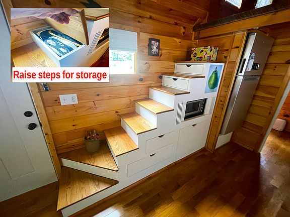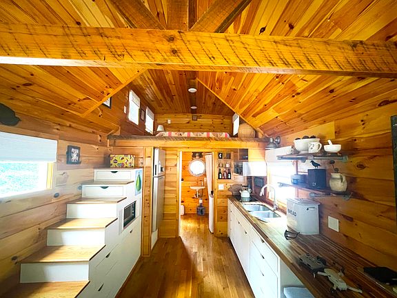 240 sq ft home built by Incredible Tiny Homes in 2020. Home sits on 1.49 acre lot priced at $154,000, with option to purchase 2 lots for a total of 2.62 acres for $184,000. Public electric, water and sewer with high speed internet provided by Newport Utilities. Very private setting nestled in on a wooded site. Beautiful wood throughout home with cathedral ceilings. Loft area bedroom with creative storage areas throughout home. Steps 1, 2 & 5 raise for storage underneath. Sofa has large storage area underneath and converts to a guest bed. Home includes Whirlpool stack washer & dryer, refrigerator, microwave, 2 burner induction cook top, Breville Smart Oven, tank-less water heater, Mitsubishi mini-split for heating & cooling & woven wood blinds on all windows. Detached storage unit also included in purchase.