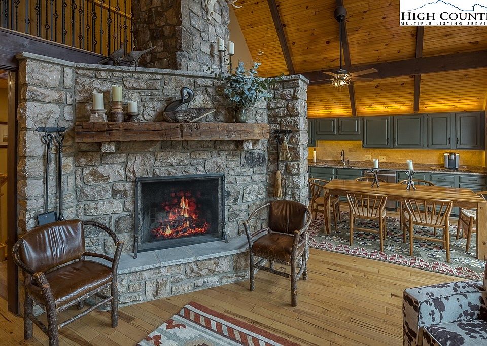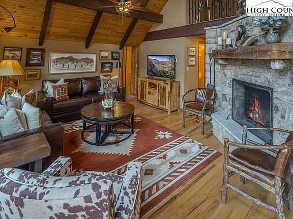 Charming 4-bedroom 2 Bath updated Hound Ears Chalet / Mountain home. This home features a floor to ceiling woodburning stone fireplace, Hickory hardwood flooring in the living and kitchen area and knotty pine tongue-in-groove vaulted ceiling. Updated kitchen with stainless steel appliance and granite countertops. The Master and two other bedrooms are located on the main level and a fourth bedroom in the loft area. Down stairs features a large den with heated floors. Sunroom and much, much more. Hound Ears Club is a gated community centrally located between Blowing Rock, Boone and Banner Elk, Location!! Memberships are separate for purchase and include fine/casual dining, golf, tennis, pickle ball, swimming pool with rock waterfall grill onsite with drinks and dining options, fitness center. As a Homeowner enjoy hiking trails, community garden, Grover's Dog Park, Watauga River access, picnic & park to sit and enjoy the sounds of the rushing river. The seller owns additional lots behind the house and would consider selling with purchase for an extra $175,000.