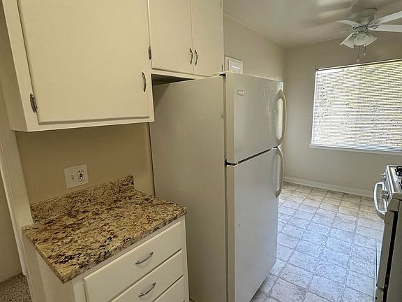 1289 Magnolia Ave #8, San Carlos Walking Distance to Downtown / Train Station Apartment Features Include: Top floor corner apartment in an 8-unit complex Carpeted throughout Mini blinds throughout Kitchen with gas stove, refrigerator, and granite counters Ceiling fan over the dining area Tiled bathroom with bath / shower combo Bedroom with ceiling fan Water & Garbage included Laundry on-site Covered parking Storage locker Cats OK with additional deposit Renter's insurance required $100,000 1 year lease