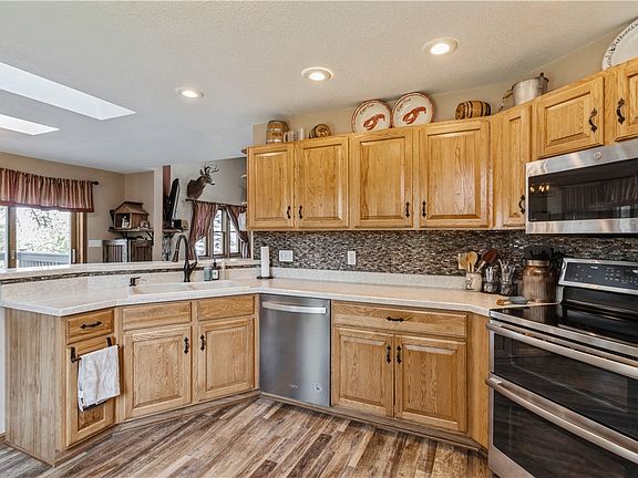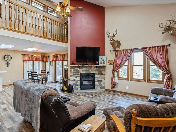 Get back to nature with this amazing acreage and home located South of Des Moines. You'll discover this "perfect hideaway" just off the Truro exit from I-35, only 25 minutes South of West Des Moines. You'll enjoy 4 acres of solitude with a 16ft x 32ft above ground pool and hot tub with three levels of deck that overlooks the pond and makes this a perfect spot to entertain plenty of guests. The wildlife is abundant and there's even access to the stocked pond and surrounding trees offer privacy and beauty. The story-and-a-half, 2649 sq ft 3-bedroom with 4th non-conforming in the lower level with finished walkout basement is nestled in the trees 400' from the dead-end access road, providing great privacy. You'll love the welcoming covered front porch. When you step through the hand-carved front door you'll discover the wide-open living space that includes the living room, dining area and kitchen that all flow together as one. The main features of the living room include a 2-story high ceiling with a wood-burning fireplace and an open staircase with a 2nd story loft. Two banks of windows and double skylights bathe the space in natural light and add to the feeling of openness. The adjacent dining area has plenty of room to host family and friends. All information obtained from Seller and public records.